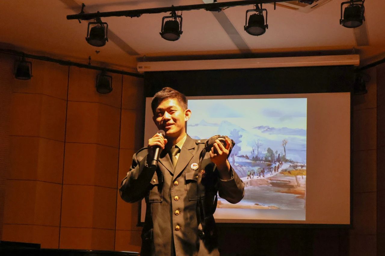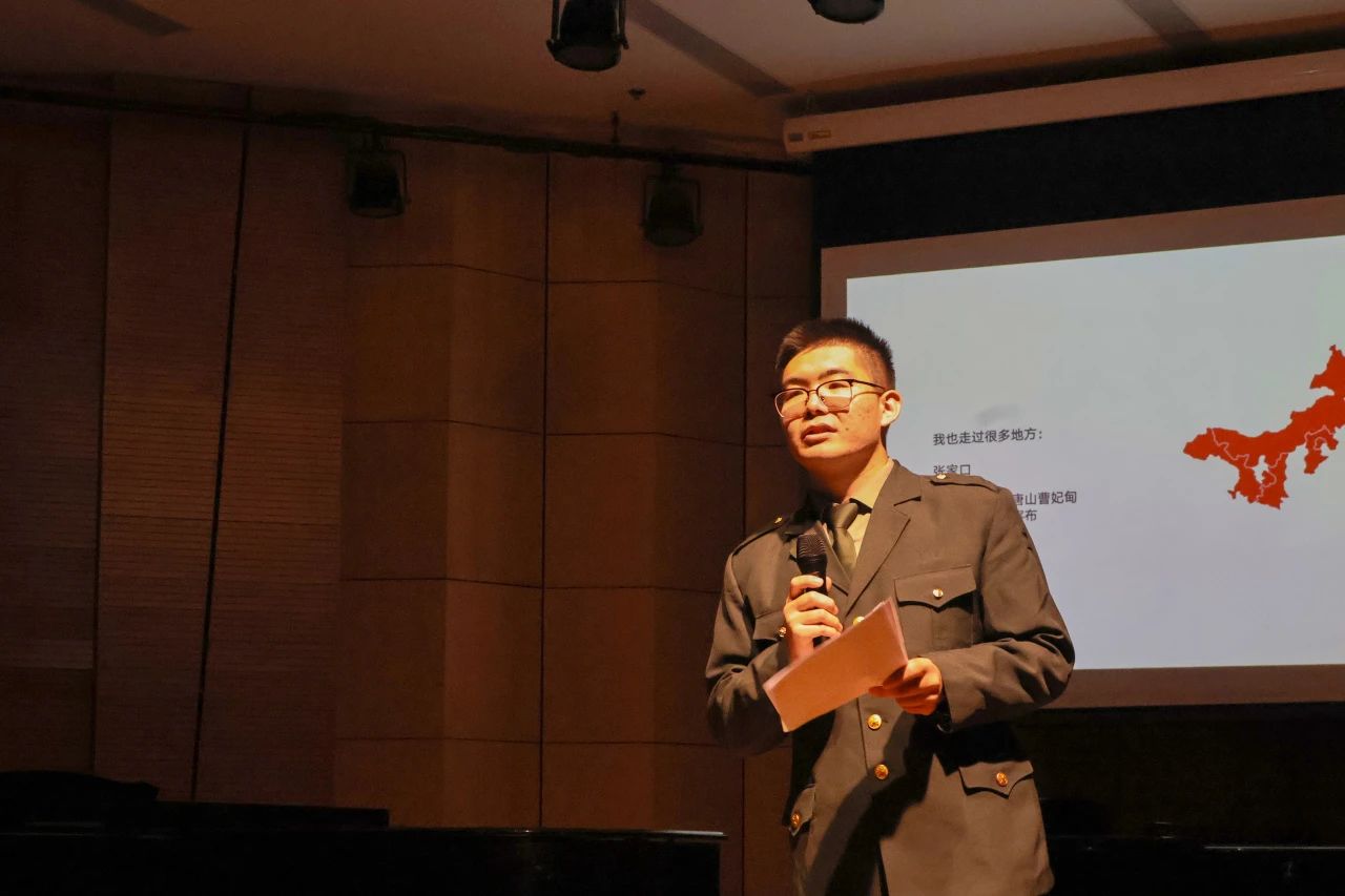 宣讲会伊始,2019级音乐表演本科生杨德昭以“戎马青春,我辈当请长缨”为主题,分享了其在中国人民武装警察部队江苏总队服役的经历。这段从2020年9月至2022年9月的军旅生涯,不仅为他解答了如何铸就坚毅意志与高尚品格的人生疑问,更成为他个人成长的重要篇章。杨德昭通过亲身经历的军营故事,展示了军队生活对他价值观和态度的深刻影响,以及退伍后在学习中对他的激励作用。他的讲述生动而真实,仿佛带领同学们亲身体验了一次热血沸腾的军营生活。杨德昭的故事彰显了军旅生涯对于塑造一个人坚强的性格、培养责任感和服务社会精神的重要性,同时也揭示了这一段特别的经历是如何成为他人生中最精彩的一笔,回答了关于怎样度过有意义的青春这一深刻问题。