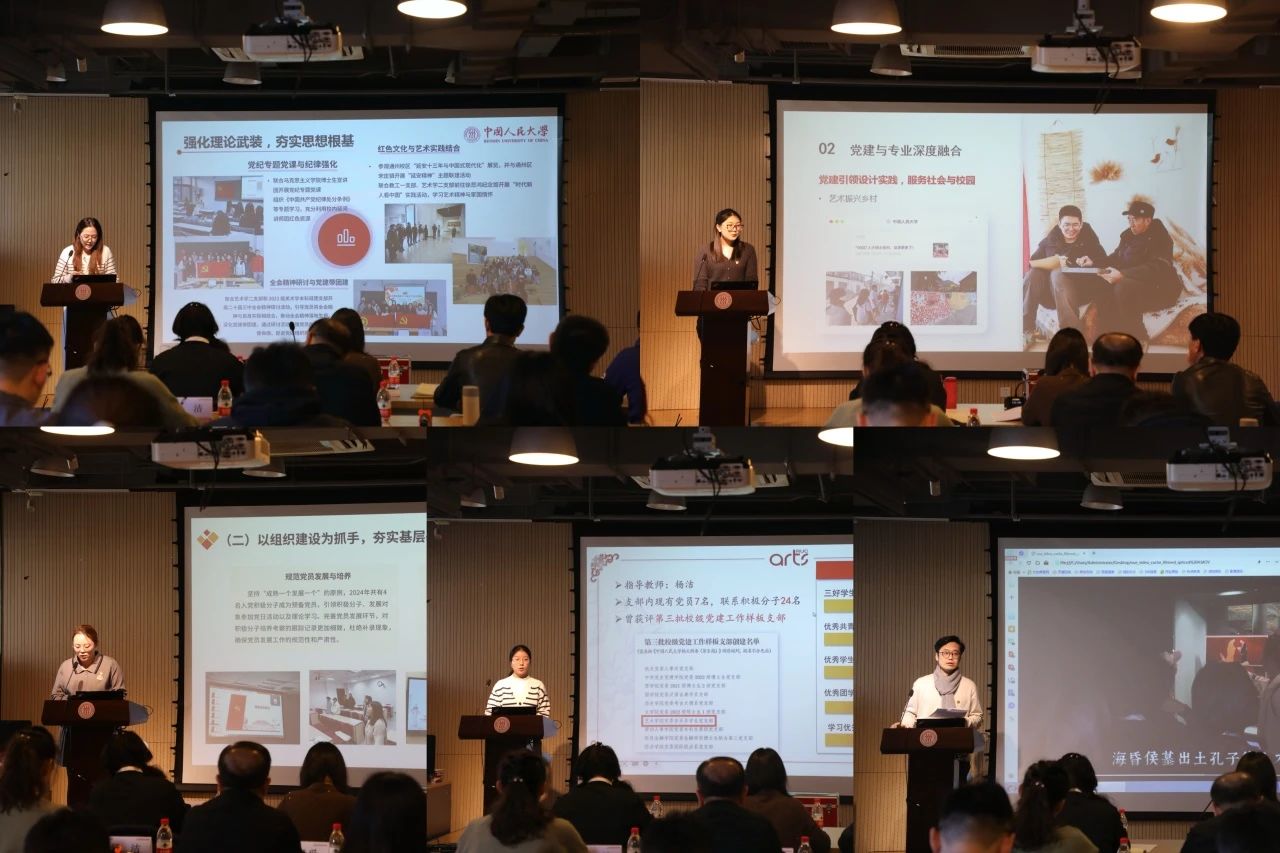 艺术学系学生第一党支部书记陈卓、设计系学生第一党支部书记范泠杉、绘画系学生第一党支部书记胡越颖、音乐系学生党支部书记罗馨玫、教职工第一党支部书记朱兴国依次进行现场述职。根据要求,各党支部书记在述职报告中重点介绍了深入开展党纪学习教育、增强基层党组织政治功能和组织功能、加强党员队伍建设、推动党建和业务工作深度融合、落实立德树人根本任务、在重大任务中发挥基层党组织战斗堡垒作用、健全全面从严治党责任体系等方面的主要做法以及存在的问题和下一步工作思路。