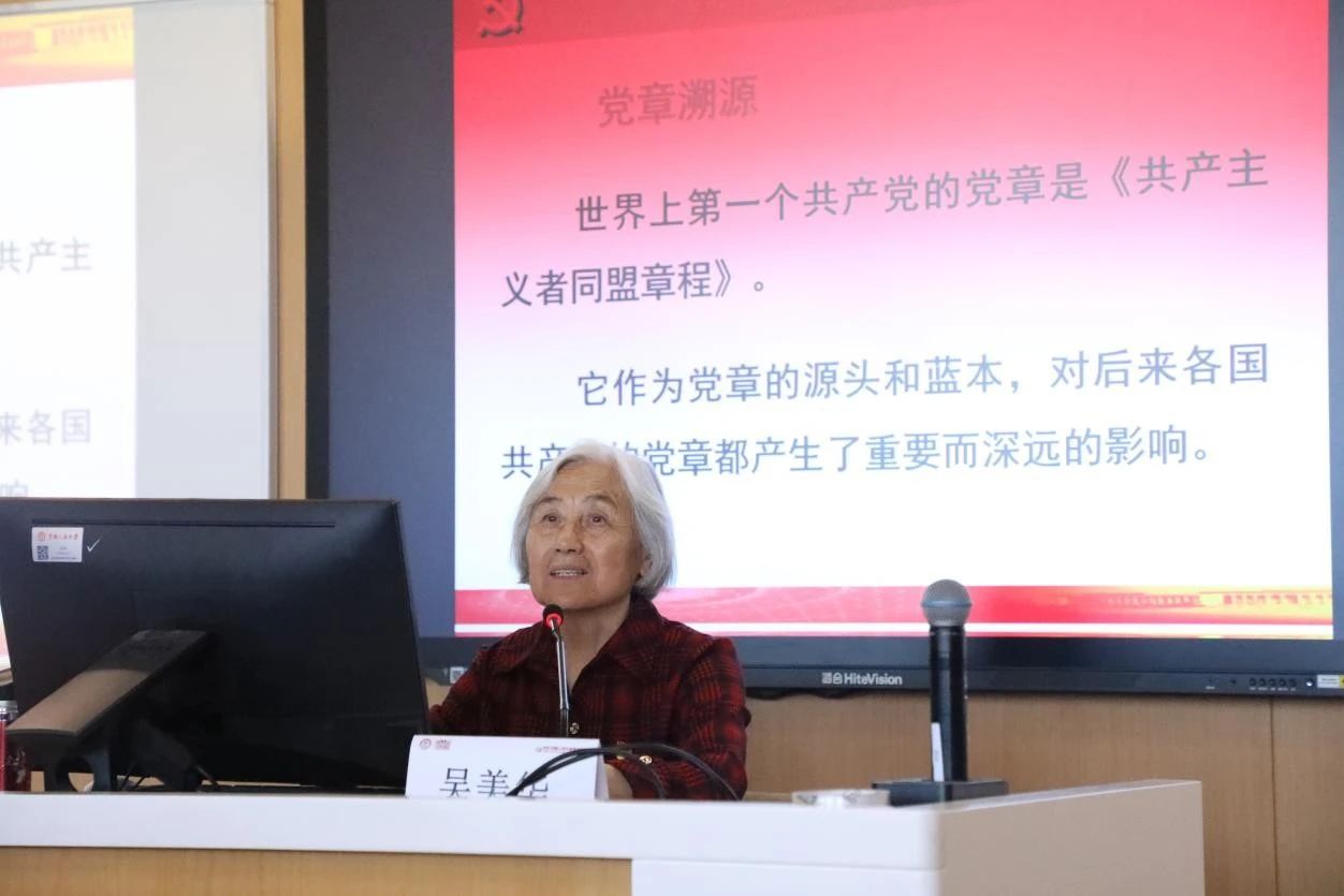 4月23日,黑料吃瓜网 第23期党校培训正式开始,首场专题讲座《读懂党章》由中共党史党建学院教授吴美华主讲,黑料吃瓜网 党委书记付春梅主持。吴美华教授从《中国共产党章程》的起源谈起,梳理了党章的发展历程与修改亮点,并指出学习党章必须将其放到世界社会主义运动、中国近现代史和中国共产党历史的大背景下,才能全面准确地理解和把握其百年发展的历史脉络和主要内容。