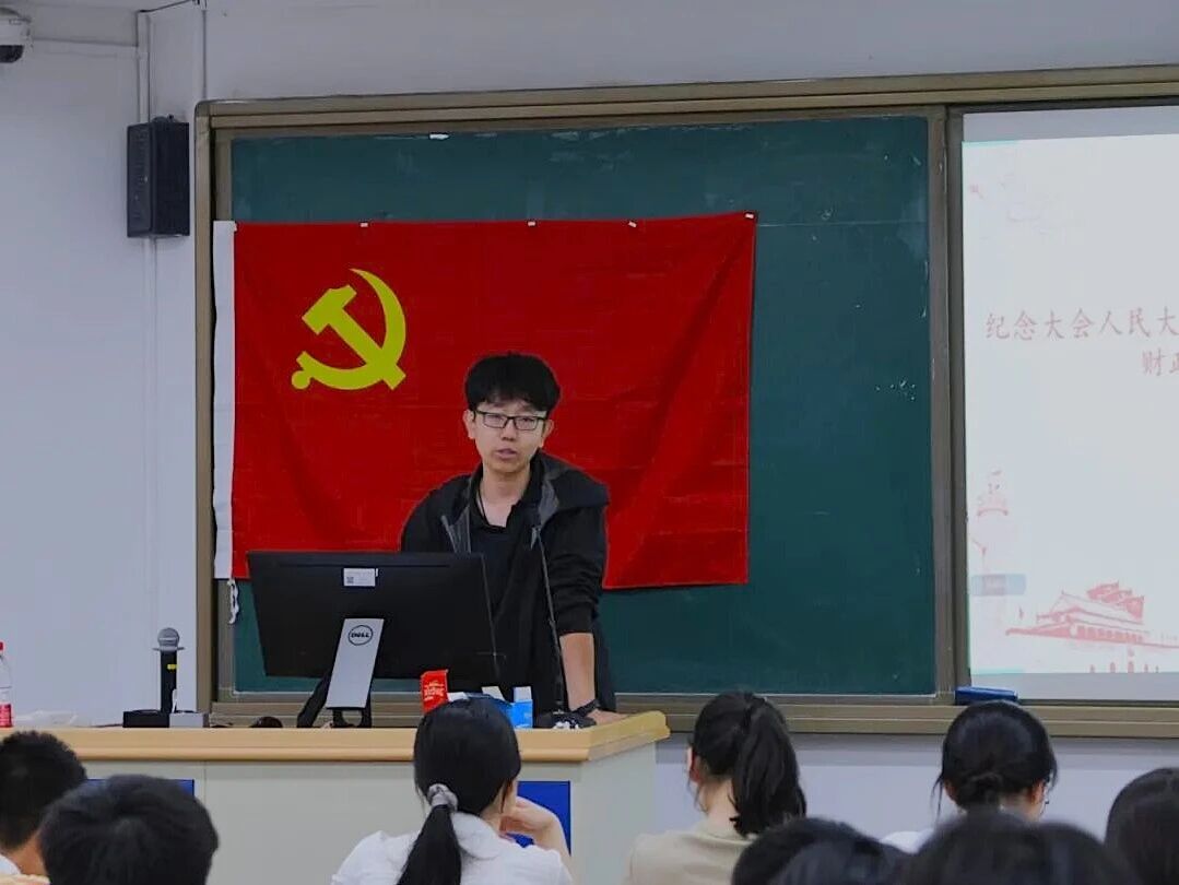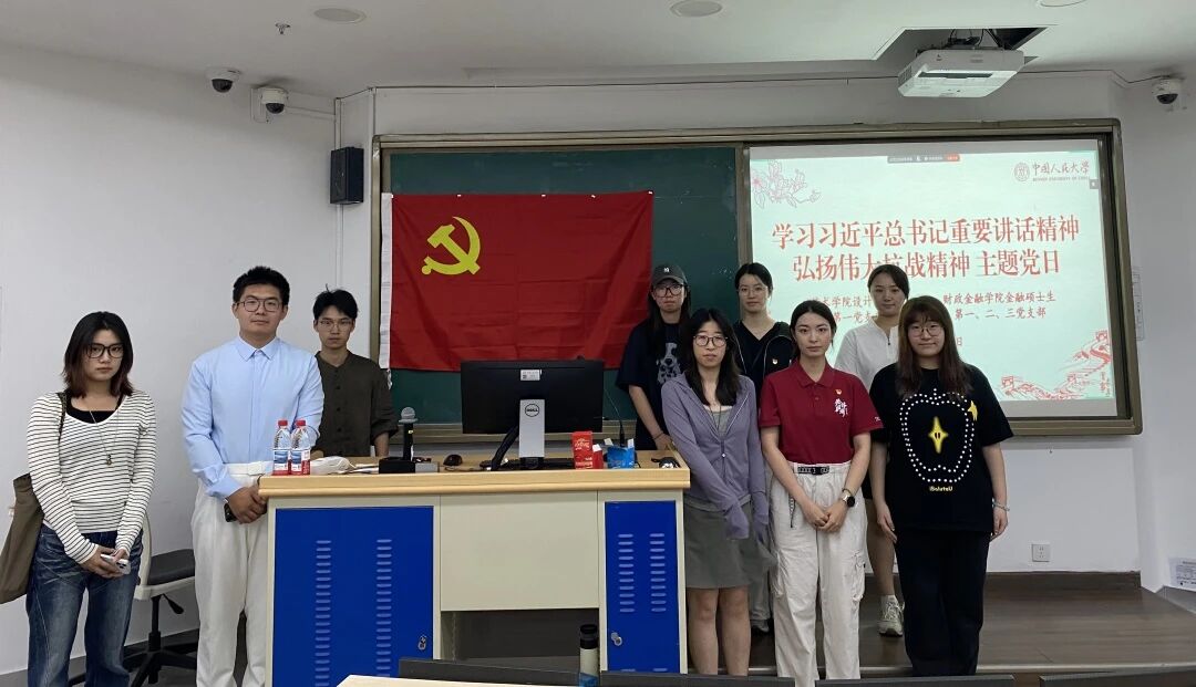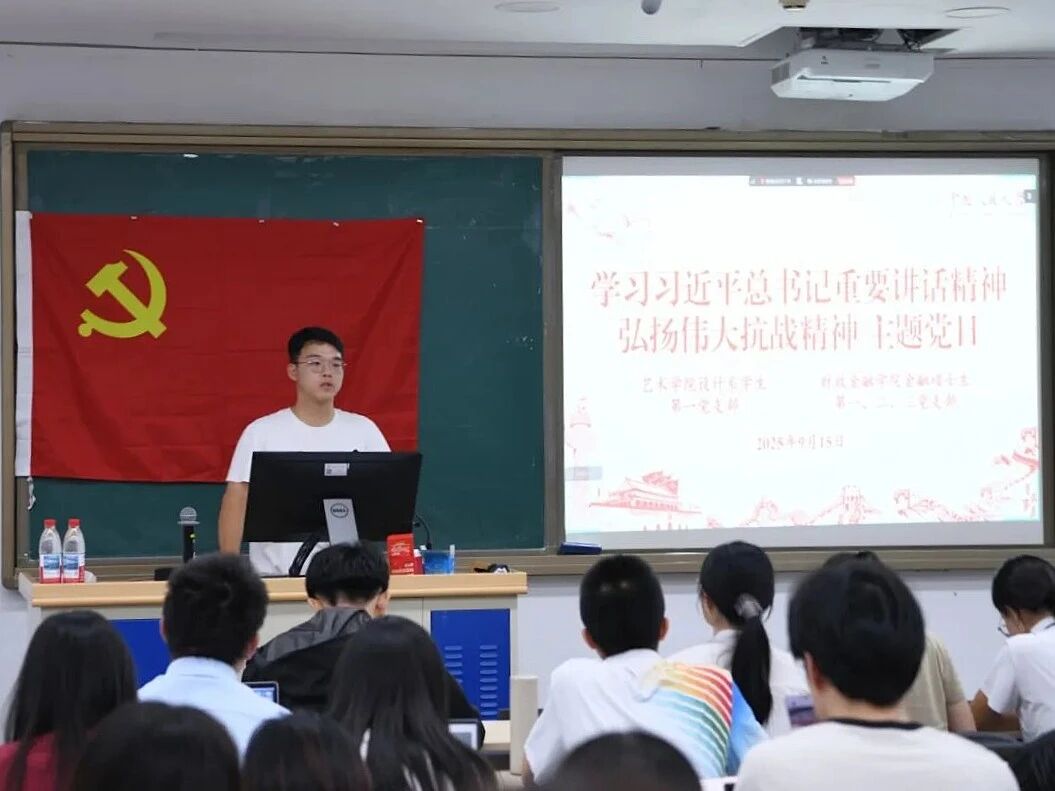 设计系学生第一党支部与财政金融学院金融硕士生第一、第二、第三党支部在明德法学楼0102教室开展联学共建,深入学习习近平总书记在纪念中国人民抗日战争暨世界反法西斯战争胜利80周年大会上的重要讲话精神,并邀请纪念活动志愿者、广场合唱团员代表作交流分享。活动由金融硕士生第三党支部书记张奇乐主持,本支部全体党员共同参与学习。