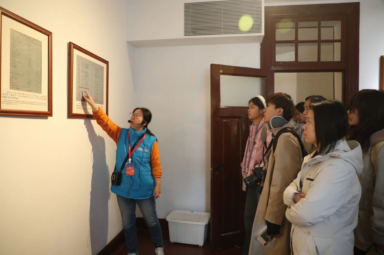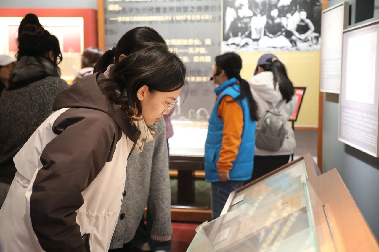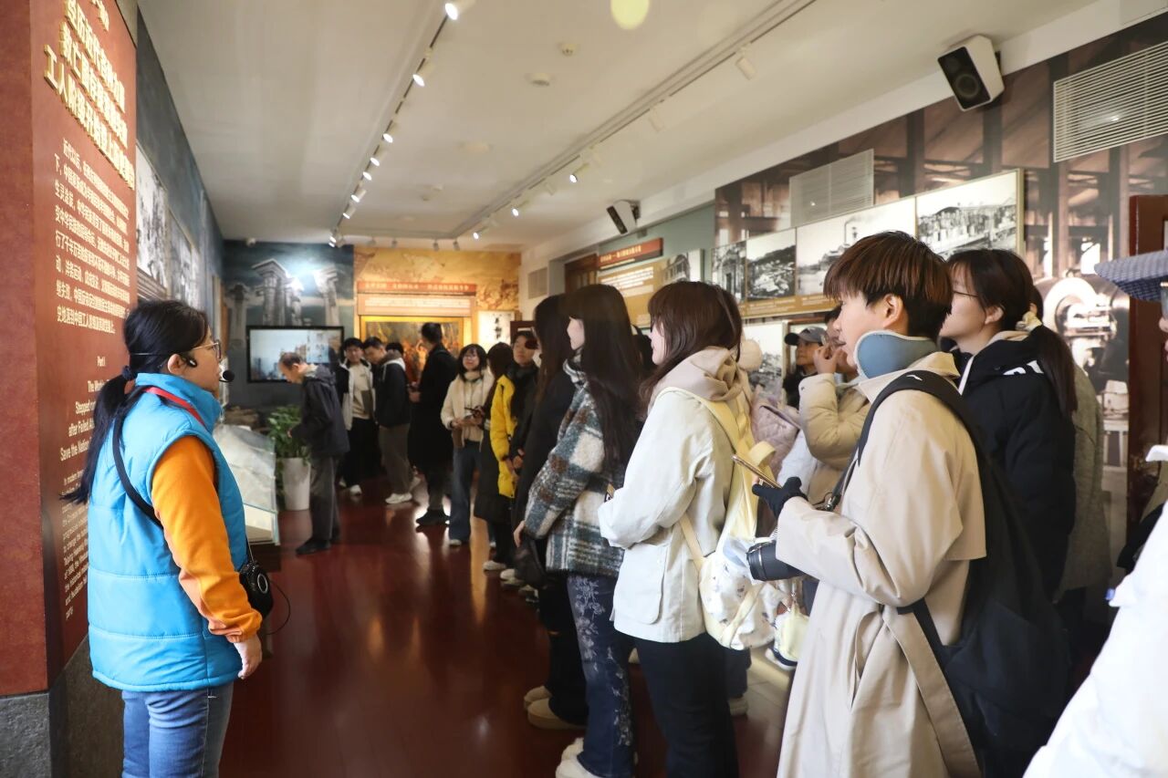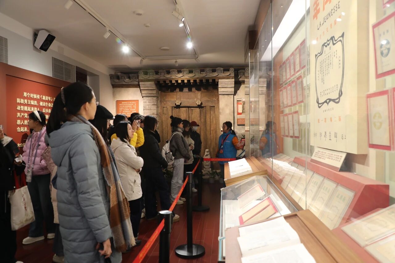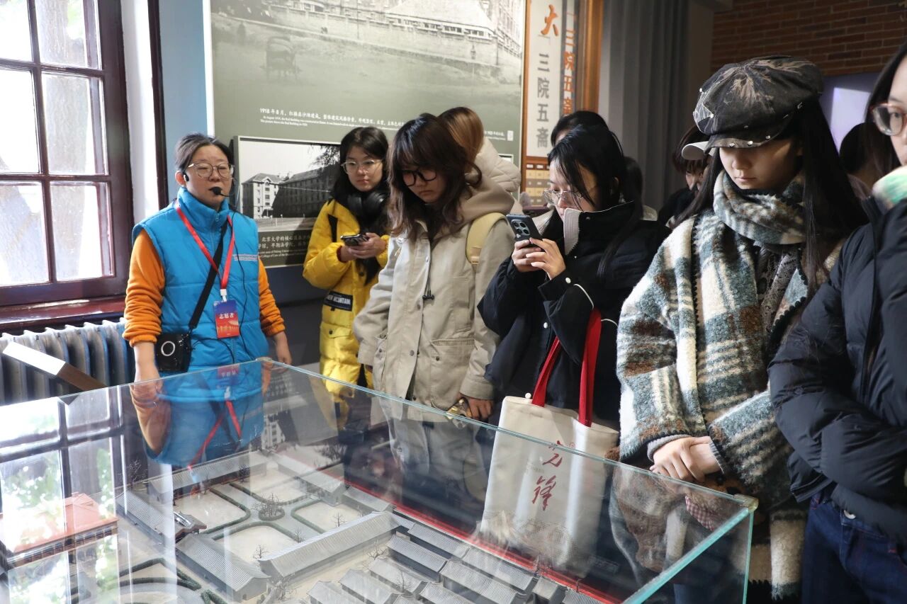 “始终奋进在时代前列”的优良传统形成精神共鸣。在纪念馆社教部讲解员的引导下,同学们先后参观了李大钊办公室、毛泽东曾工作过的第二阅览室、五四游行筹备房间等六处原址复原场景,两千余件文物史料中,从《新青年》复刻版到李大钊批阅的唯物史观试卷,每一件都成为跨越时空的“活教材”。