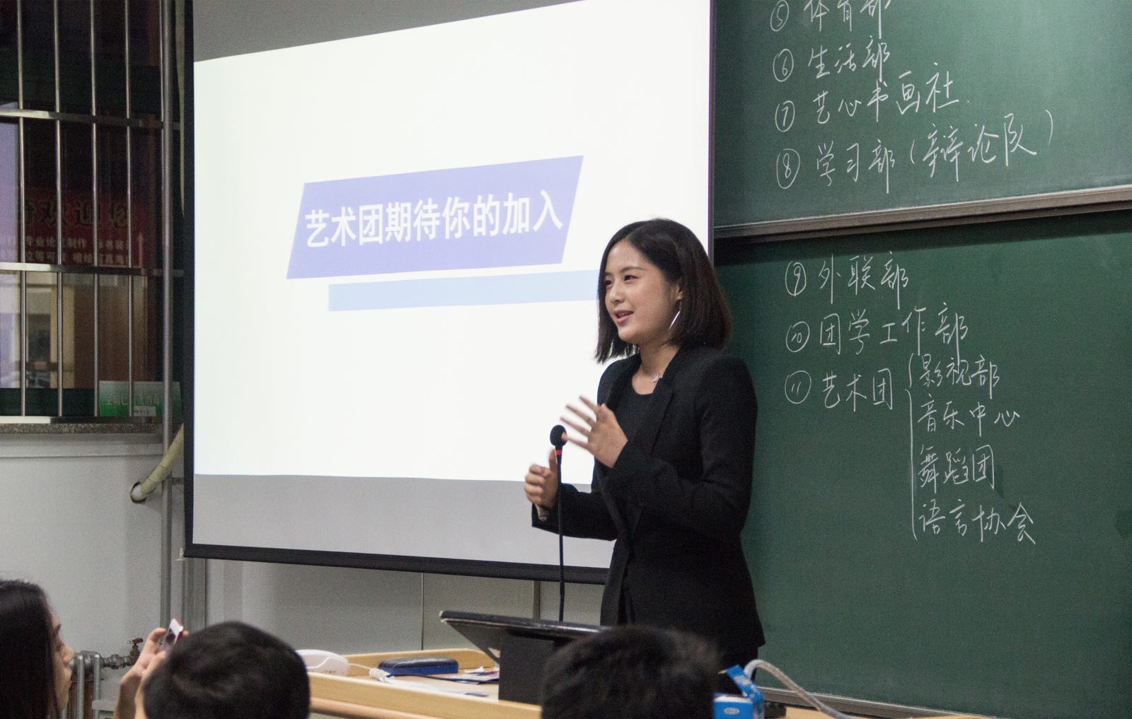 随后,各部门的部长及副部长上台发言,分别对院会下辖11个职能部门,即宣传部、文化部、青年志愿者协会、办公室部、体育部、生活部、艺心书画社、学习部(辩论队)、外联部、团学工作部以及艺术团(包含影视部、音乐中心、舞蹈团,语言协会四个部门)的职能与组织结构进行了详细的说明,方便新生们根据自身情况做出最佳选择。