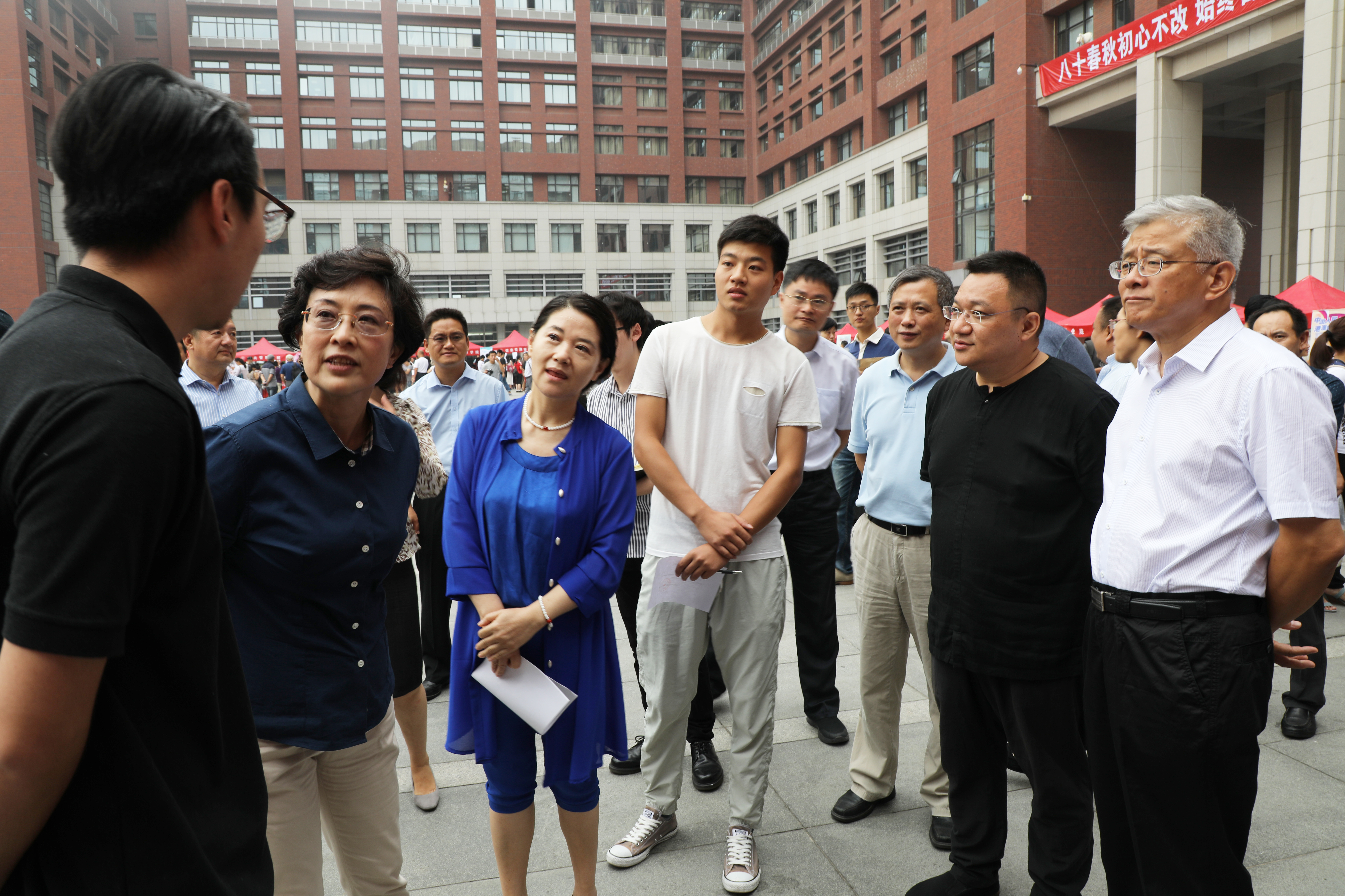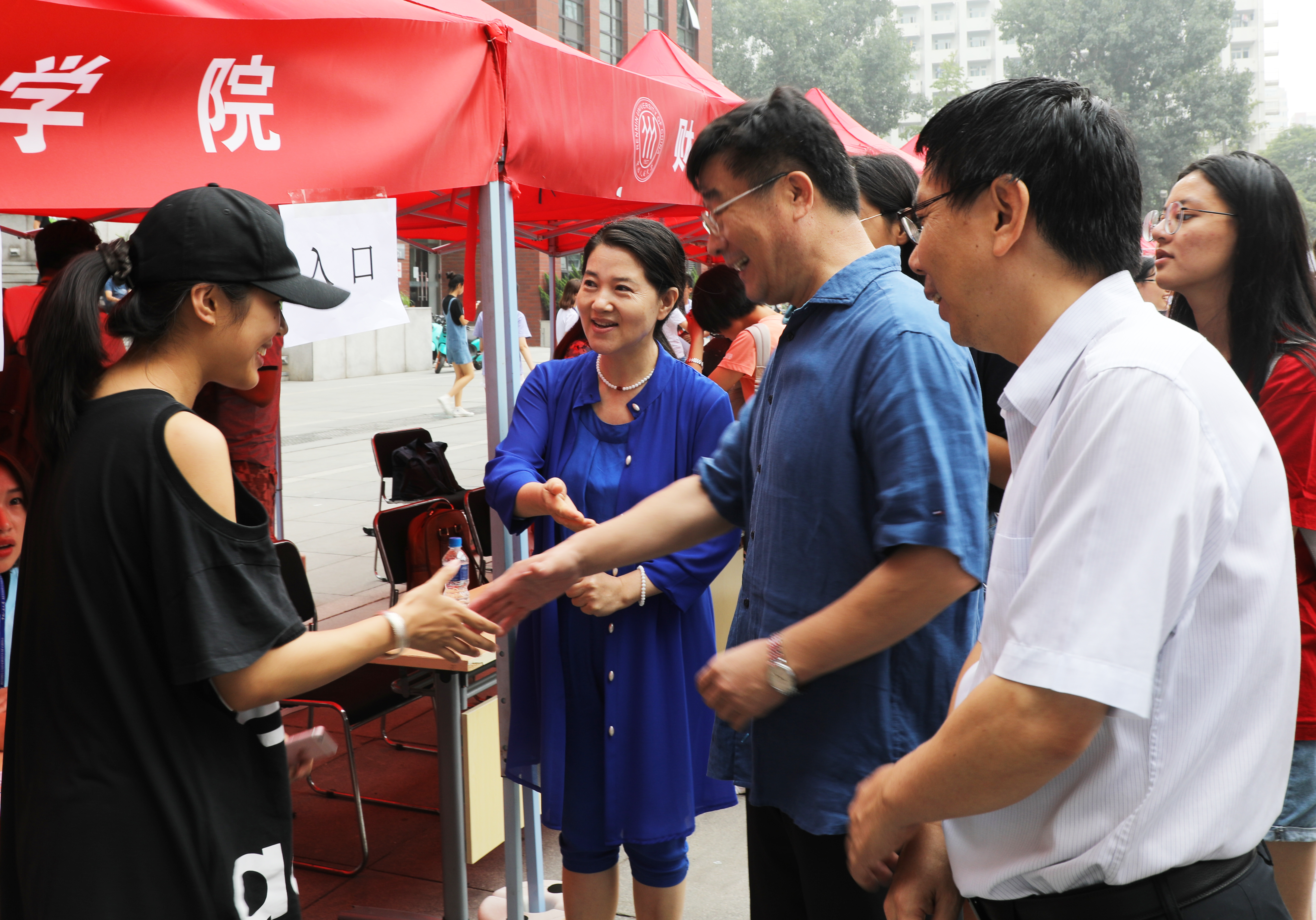 党委书记靳诺教授、校长刘伟教授在校部机关负责人的陪同下莅临我院迎新现场慰问工作人员并询问迎新工作开展情况,与新生、家长进行亲切交流,指导我院迎新工作。