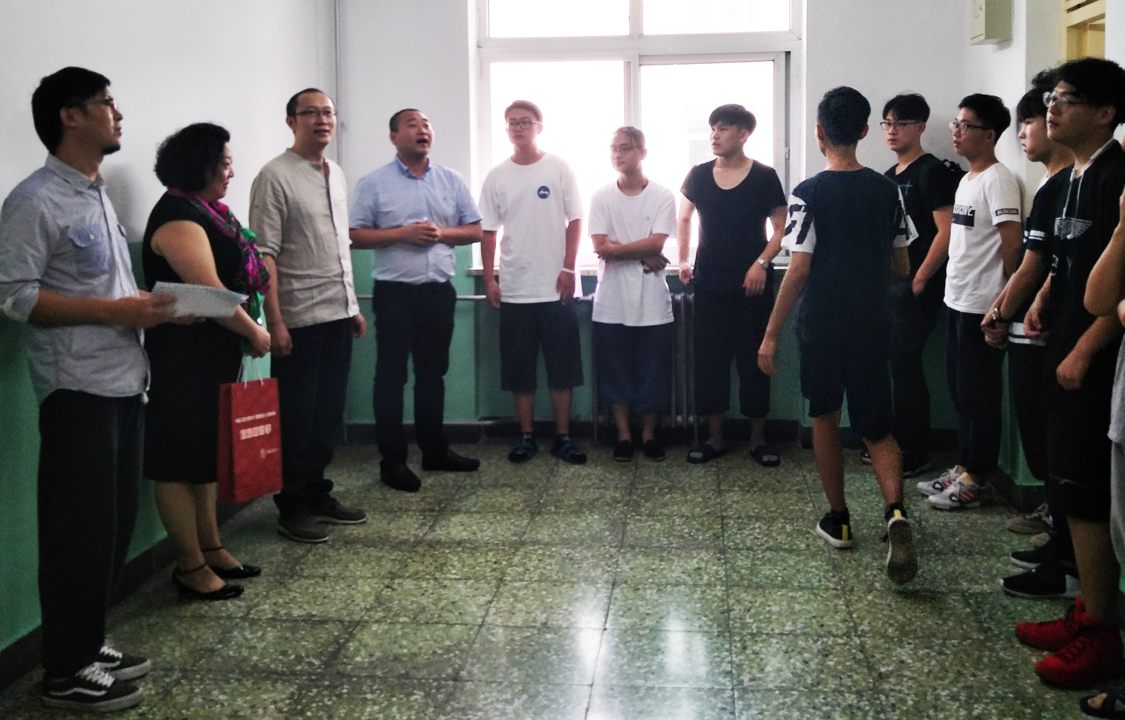 副院长刘明才副教授、2017级绘画班主任吴頔老师、艺术设计班主任丛志强老师、音乐表演班主任周源老师、美术学班主任王文娟老师、班级辅导员章艺源、任珈乐、侯伟华、马笛、马任翔同学及主要学生干部代表学院前往品一、品六宿舍慰问新生,细致地了解新生住宿情况,以便让新生更好更快地融入全新的大学生活。