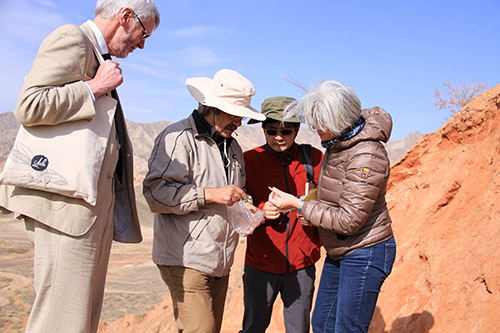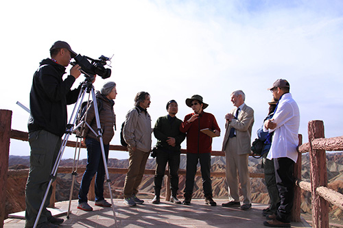 考察队在张掖丹霞地貌讨论中华文化发展