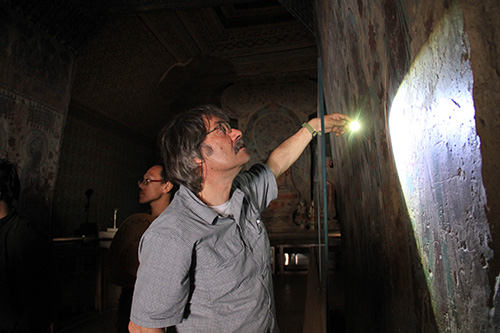 文艺复兴研究院院长丁方教授,意大利OPD修复专家Lanfrabchi Mariarosa、Fabrizio Bandini。考察队从技术艺术史的角度切入对东方古代壁画材料与技法的研究,并在此基础上进行东西方文化比较研究的深度探索。