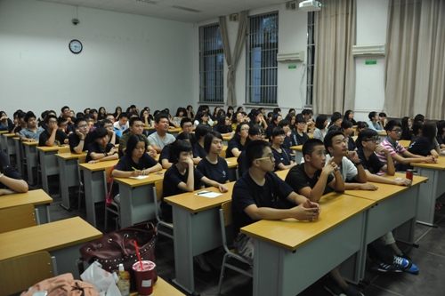 首先,主持人向新生们转达了学院领导老师的问候,并介绍了此次活动的主要内容和意义。随后,学习部部长翁雨晴同学为新生们讲述了校内外学习和生活指南,内容详实而生动,博得了同学们的阵阵掌声。活动的第二部分采用了视频播放形式,由宣传部精心制作,内容包含了我院历年来的举办和参与的各类大型团学活动,如新生运动会、一二九合唱比赛、辩论赛等。精彩的活动合影、幽默的排练花絮等内容的展示令新生们跃跃欲试。最后,学生会各部门的负责人分别作了自我介绍,并简单介绍了学生会的工作,鼓励大家努力学习,快乐生活。
