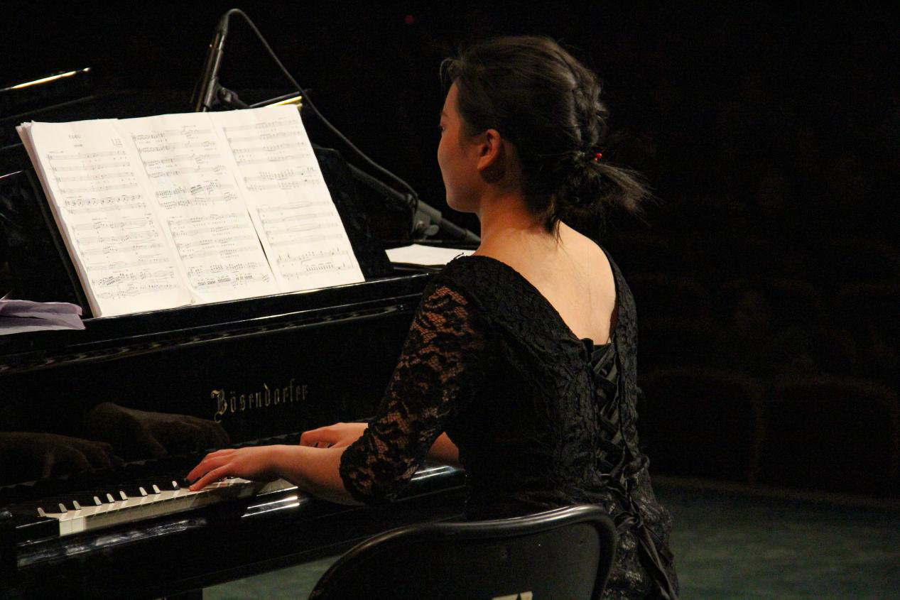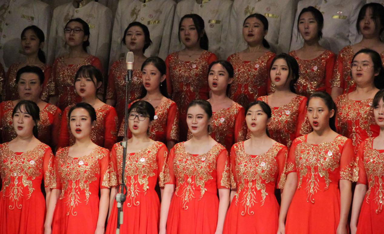 代表队在B组第二位出场,合唱曲目为著名的合唱歌曲《不忘初心》。艺院代表队的参赛选手们统一着红色长裙和白礼服,整齐划一徐徐入场,展现了艺院代表队师生良好的精神面貌。演唱的歌曲旋律优美,和声精妙,起伏宽大,提醒着我们要不忘初心,砥砺向前。