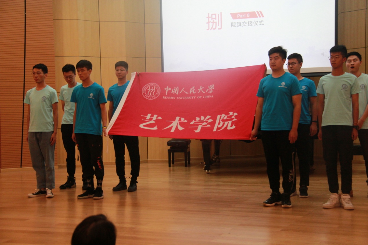 院旗,完成院旗交接仪式。细数来时的点点滴滴,憧憬崭新的人生旅程。新一代的艺院学子已经做好准备,时刻以饱满的热情、昂扬的斗志、坚韧的毅力向着梦想前进,做有理想、有担当、有力量的追梦人。
