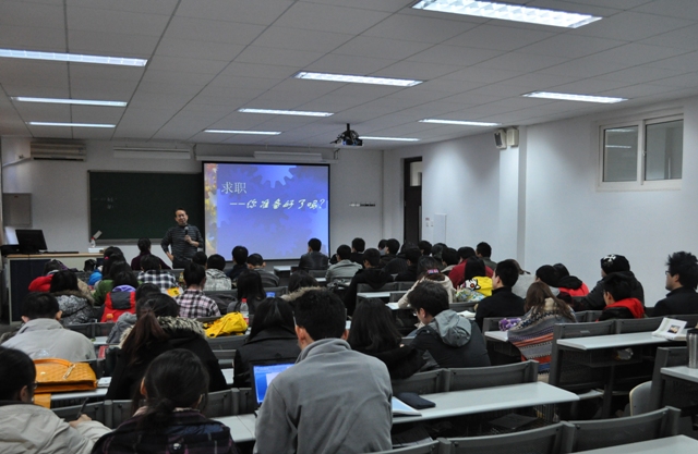 李教授也为大家讲解了一些投递简历、求职面试的技巧和方法,并且讲述了“舍得”的道理,告诉同学们应当“志存高远,脚踏实地”,用心感悟,用智慧处事,用信心和坚持去面对挫折。