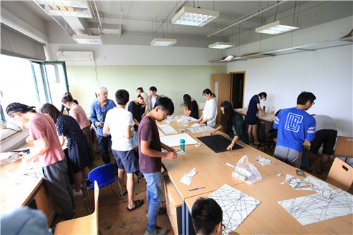 的教学内容有:线、形、构成、色彩、不同的媒介训练。在课堂上,他尝试让同学们结合各类独特的中国意象,用水墨、宣纸、书法进行艺术创作,同学们的艺术创作热情被充分调动起来。