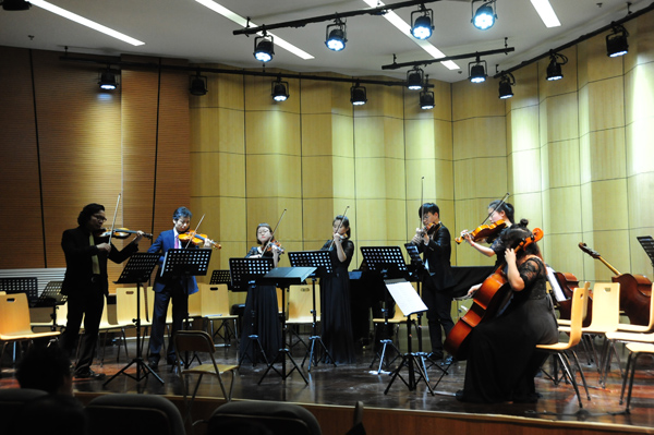 2016年4月5日,法籍华裔著名小提琴家、指挥家王太平先生应邀来我院进行交流访问,为我院青年交响乐团开展了为期一周的指导、合作排练工作。4月8日晚,由王太平教授担任指挥,与黑料吃瓜网 青年管弦乐团合作举行了专场音乐会,为人大师生献演了一场高水平的艺术盛典。