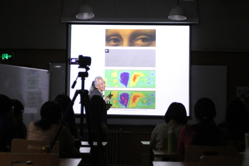 此次国际学科前沿教师培训项目旨在邀请佐藤教授从绘画的本源出发,在材料技法上有一个最基本和科学的讲解。佐藤一郎教授基于他近50年的绘画心得,从中国古代张彦远《历代名画记》中谢赫六法论入手,比较东西方绘画艺术理论体系。并从哲学的角度,亚里士多德的“看的构造”与扬•凡•艾克的“画的构造”进行比较来讨论绘画的构造,以及物理学科牛顿的“光学”与“曲折率”出发,以达芬奇的经典之作“蒙娜丽莎”为例,来讲解西方绘画中文艺复兴盛期的油画重层技法,将绘画与技术、科学、艺术史紧密结合,提出他个人的观点,令此次参与培训计划的青年师生广开思路,这种独特的研究艺术的视角,为老师同学们进行艺术研究提供了一种新的审视角度,从而开阔了研究艺术的视野。