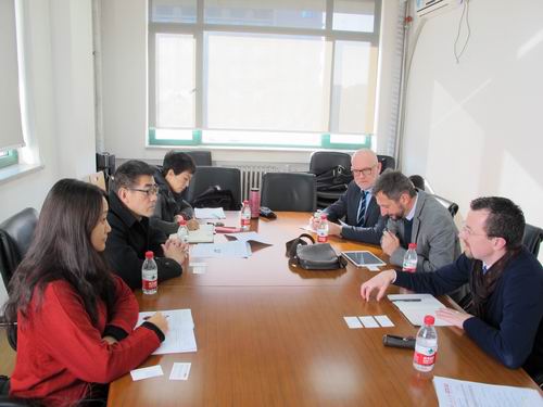 2014年12月1日上午,巴黎四大副校长Pascal Aquien教授,博士研究生院院长Pierre Demeulenaere教授、中法学院法方行政办公室主任马丘来我院访问。副院长王英健教授、艺术学系副系主任付阳华副教授、办公室副主任钱军参加了此次会谈。双方就可能的合作形式进行探讨,并达成初步合作意向,我院有意邀请巴黎四大艺术学教授来院举办2015年暑期小学期课程,为将来更多形式的交流合作创造了良好的开端。