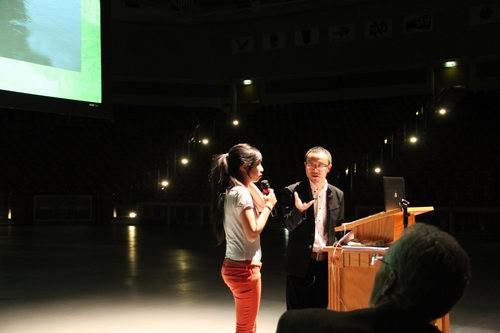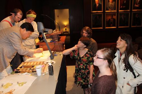 吴冰老师的讲座增加了现场互动的环节,美国学生积极主动参与,纷纷上讲台跟