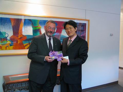 签订协议,开展美术专业师生交流,双方均感从中获益。为提高交流学术成效,2006年,经双方友好协商,我院派出学生由原本科生扩展到硕士生;且确定从2007年始,我院派出教师增至每次4人;另外,俄大(OU)考虑接受我院博士生赴美进修。本次访美,郑晓华书记就增派教师和博士生进修等事宜,与美术学院沃森(Dr. Mary Jo Wotson)院长等交换了意见。