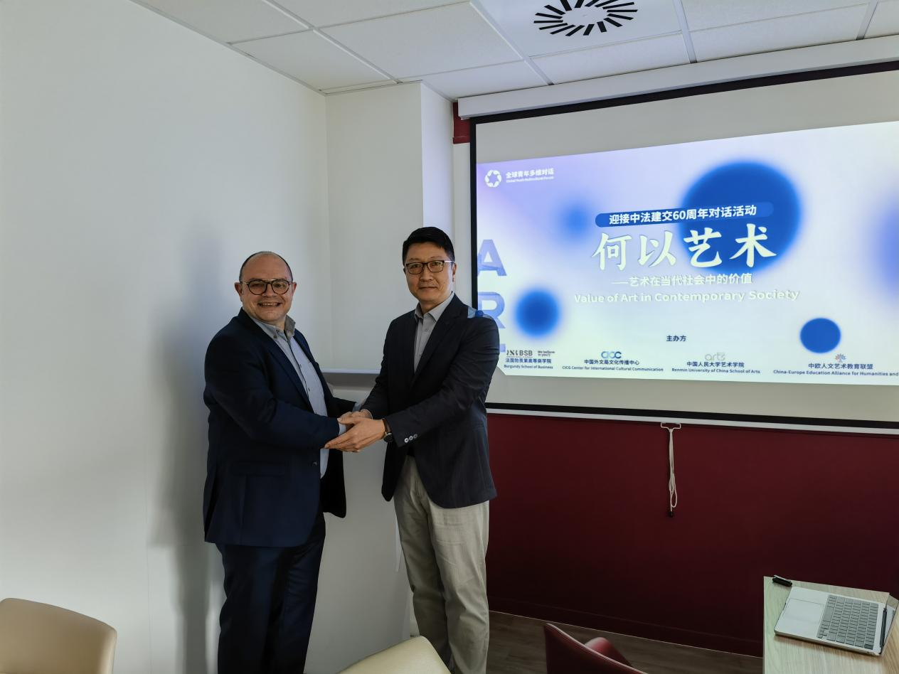 、法国勃艮第高等商学院、中国外文局文化传播中心、中欧人文艺术教育联盟联合举办“全球青年多维对话——何以艺术,艺术在当代社会中的功能和价值”学术对话活动,以线上线下相结合的方式开启中法两国青年学者的跨时空对话。本次活动采用学术研讨、音乐表演、中法两地学生互动交流的方式,首次将“全球青年多维对话”品牌项目拓展到海外,有效推动了该项目的跨文化和跨领域融合创新,并在中欧人文艺术教育联盟平台的助力下,黑料吃瓜网