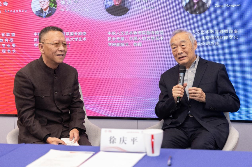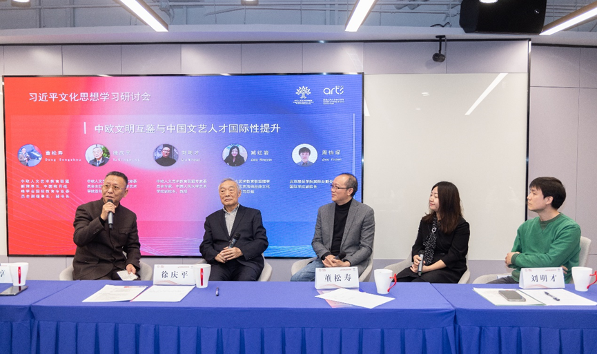 徐庆平提到,习近平总书记在插队期间广泛阅读世界各国名著,如饥似渴地学习中外优秀文明,启示我们人文艺术教育需要保持开放的态度和广阔的视野,积极学习各国先进知识文化,增强知识储备。刘明才回顾自己对外交流访问的经历,表示必须摒弃对西方低姿态、仰望式的学习态度,中国的艺术发展只有扎根于本民族文化土壤中才能有广阔的发展空间。臧红岩结合自己在跨文化传播领域的创业经验,表示要积极探索新的文化传播与发展模式,为孔子学院建设、图书翻译出版等人文艺术教育事业创造新的发展契机和提升空间。周怡琛表示,北京服装学院承担着文化传播与文明交流互鉴的重要使命。中国服饰是传播中华文化的良好媒介,除了实用性之外,其艺术性承载着深厚的文化内涵,有助于让来华留学生更好的了解中国文化精髓,促进各国文明互鉴、民心相通。