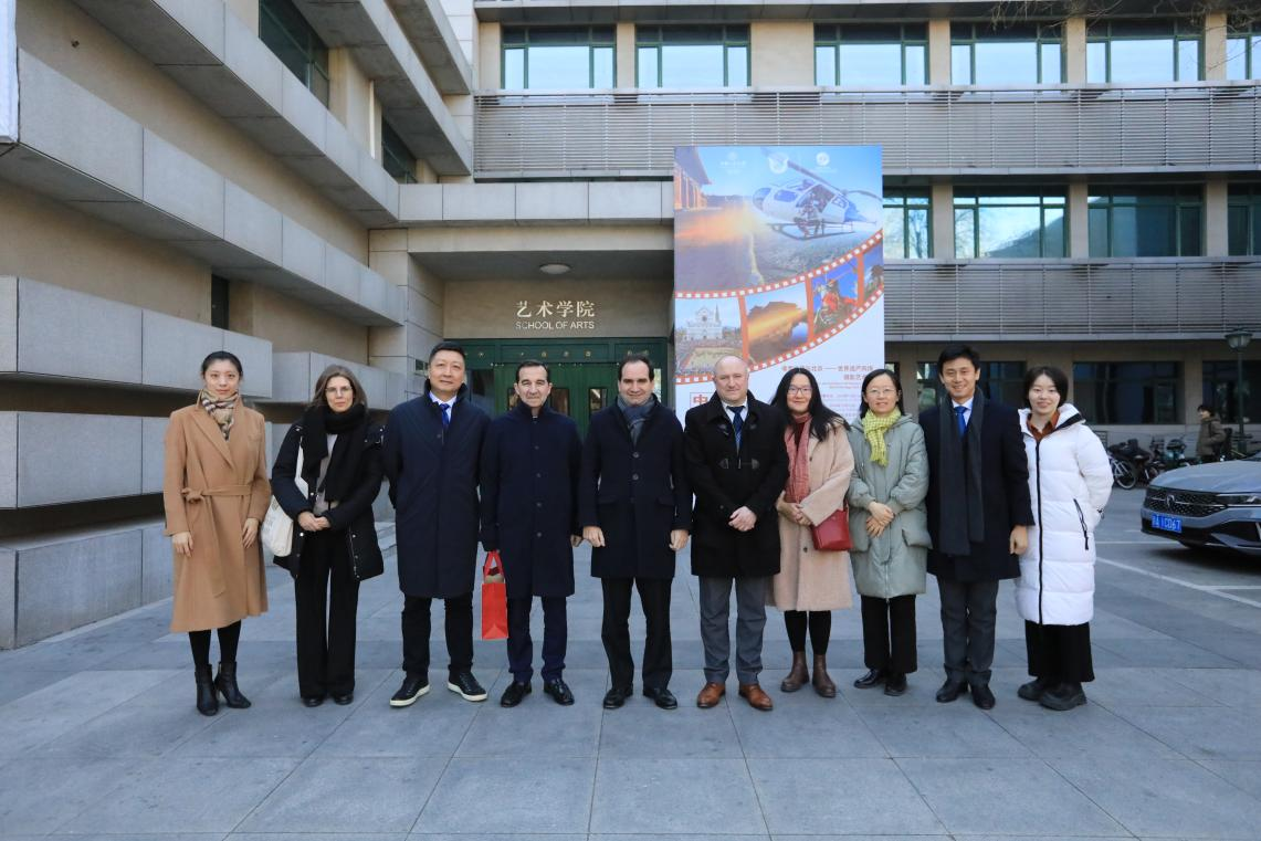 在绘画、设计、音乐、艺术学等学科领域的独特优势,突出展示了学院国际交流特色项目和成果,并结合人工智能、数字创新、跨领域融合等学术前沿趋势,为双方未来合作提出富有建设性和创新性的建议。此外,他特别感谢科英布拉大学此前热情接待我院师生研学团到访,彼此在跨文化的交流互动中增进了解、加深友谊,期待两校合作能向更高水平迈进。