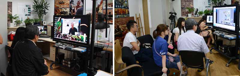 2014年5月21日,在421动画实验室由设计系副系主任、动画专业学科带头人赵前副教授组织展开第二次连线学术交流讲座,此次讲座主要以动画专业研究生为主体,形式为提问、探讨交流互动,首先是教师间就双方学科发展情况及9月份共同参与“黄河项目”教学实践进行交流与磋商。紧接着是学生间的对话交流,英国法尔茅斯大学自然历史学院学科主持人盖纳·贝内特教授,阿德里安·布朗教授分别介绍学生们在埃及、冰岛、印度等地的课外实践摄影成果。其中谈到的微距摄影、显微摄影、水下摄影,同学们尤为感兴趣,双方学生还对摄影技术及后期处理方面进行提问、答疑等互动交流。