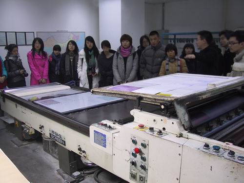 为了强调设计教学的有效性,力求让“脱离”还原“真实”、“枯燥”还原“生动”,设计系在几年来坚持开门实践教学的同时,近期又经过了多方努力,联结了我国著名的联想公司、雅昌印刷公司等多家强势实用单位,搭建了课堂与社会的宽畅通道。上周由设计系教师祝东平、吴文越、焦振涛、唐晓刚带领的07级、08级本科平面设计班和在职研究生课程班同学到雅昌印刷公司的一次开放参与式教学,就收到了良好的效果,使同学们收效甚大。在本次开放参与式教学中,师生们由雅昌设计部主管丁强接待并陪同参观了雅昌艺术馆的珍贵印刷作品、最新日本纸产品和印刷生产全过程等。通过对设计项目的讲述和工作流程的跟踪,使大家真实地看到了原来课堂上一直“隐性”的“设计”,对设计的理解有了开悟和升化,同时也更加明确了今后的学习目标。
