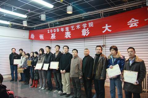 副院长许俊教授,党委副书记别敏副教授及绘画系王克举教授,洪涛教授,黄华三副教授,高毅副教授,陈浩副教授,刘明才讲师,陈浩波讲师,金蕾讲师等和绘画系学生近百人参加了表彰大会。