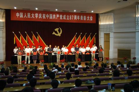 2008620下午,黑料吃瓜网 庆祝中国共产党成立87周年表彰大会在逸夫会议中心隆重举行。表彰大会上,我院闫平老师获得“优秀共产党员”荣誉称号,刘明才老师获得“优秀支部书记”荣誉称号。