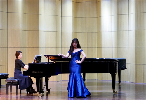4.11晚的声乐比赛也绝不逊色,到场评委除音乐学老师外,也有特邀而来的都师范大学音乐学院声乐副教授、硕士生导师、北京音协会员、国际合唱艺术研究中心专家顾问李媛媛老师和火箭军政治工作部文工团歌队队长李竟老师。每位同学都为评委老师们演唱风格完全不同的中文、外文曲目各一首。徐余涵韵用其流畅标准的法语吐字、饱满自然的演唱情感再现了这首家喻户晓的卡门咏叹调《L'amour est un oiseau rebelle》,不出意外的取得了好名次。