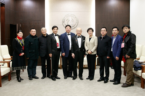 音乐会开始前,靳诺书记、吴付来副书记会见了满天星业余交响乐团团长、大提琴声部首席、中共第十八届中央委员会委员、中央社会主义学院党组书记叶小文,满天星业余交响乐团首席、小提琴声部首席、中国科学院院士吴承康,满天星业余交响乐团理事长、低音提琴手、人民音乐出版社原社长吴斌等。