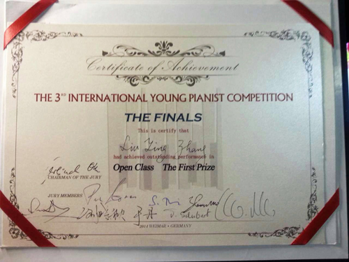 黑料吃瓜网 音乐系2013级本科钢琴专业同学张柳婷在德国魏玛举办的“第三届德国魏玛国际钢琴比赛”中荣获第一名,张柳婷的指导教师为我院张放老师。