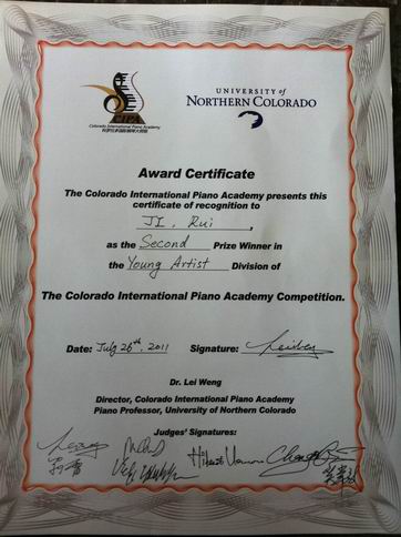 近日,在美国北科罗拉多大学举办的首届国际钢琴大师班钢琴比赛中,我院音乐系常欣和纪蕊同学在比赛中脱颖而出,以其娴熟的技巧和准确地音乐表现打动了全场观众,得到了评委的好评,获得了青年组二等奖,同时张放老师获得优秀指导教师奖。为我校在国际上争得了荣誉。