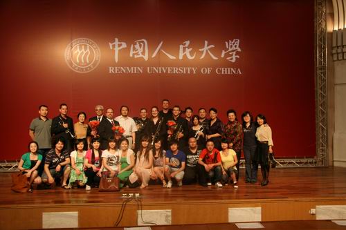 5月20日晚,俄克拉荷马大学师生在人大逸夫会议中心演出了一台精彩的节目。他们通过歌声、几种铜管乐器的独奏与五重奏等形式,分别演出了爵士、古典以及流行风格的乐曲乐章,他们的演出受到我校师生的热烈欢迎,使大家感受到西方文化的博远和深厚,为我们提供了较好的教学指导和艺术借鉴,为大家送来了美好的艺术享受。