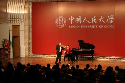 逸夫音乐厅座无虚席。来自中国和法国的听众聆听了一场高水平的《中法文化之春》音乐会。演奏者是法国巴黎音乐学院的小提琴大师安东·古拉尔和钢琴大师杰妮耶芙·玛蒂妮。二位大师是应黑料吃瓜网
