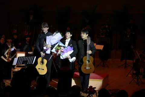 由我院音乐系与中国音乐家协会吉他学会联合举办的“浪漫吉他交响音乐会”于12月24日在国家图书馆音乐厅举行。近千人的音乐厅内座无虚席,观众以极大的热情聆听了由我院音乐系学生管弦乐团,吉他大师王友民、奥拉夫(德)共同演奏的著名作曲家石夫的双吉他协奏曲《畅想西班牙》,这是该部作品在北京的首场演出,获得极大成功。