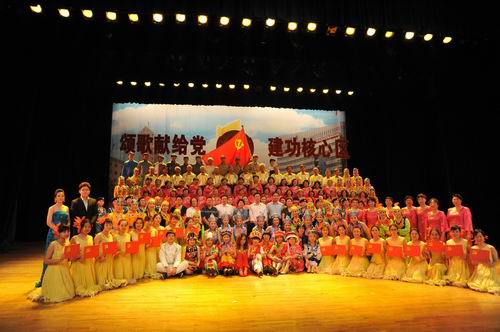 五月的鲜花是春天使者,五月的春雷是大地脉搏,五月的相聚是快乐时刻,五月的旋律是盛世欢歌。选自地区机关、院校、企业和社区的演员们,唱起赞美的歌,跳起热情的舞,为五月的鲜花增添光彩。我院音乐系 周源老师的独唱《祝福祖国》爱国之情真炽,奋发之情豪迈;音乐系吴羡、张曦媛、黄晶妮等同学的小合唱《军民团结一家亲》情真意切,淳朴清新,在汇演中双双荣获“一等奖”。
