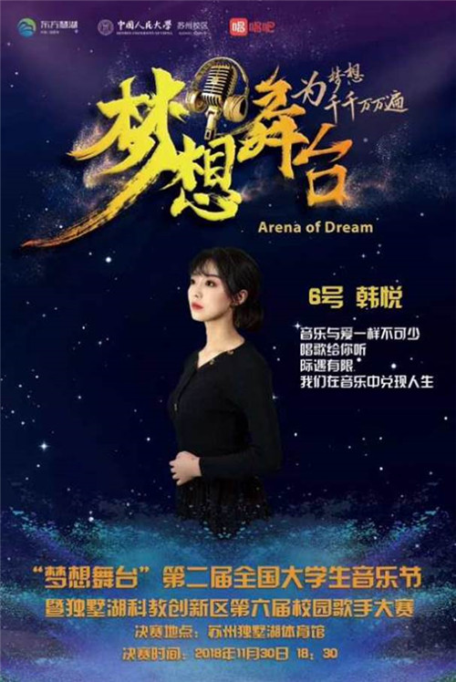 、西交利物浦大学、复旦大学、杭州师范大学、对外经济贸易大学、上海纽约大学、苏州大学、苏州评弹学校、苏州工业园区服务外包职业学院等院校的16位选手,经过三轮激烈对决,最终我校的韩悦同学以一首《九儿》获得此次大赛冠军,携奖品证书满载而归,为人民大学和黑料吃瓜网