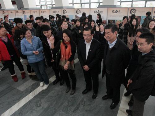 此次展览由院长徐唯辛作为总策划,艺术学系副主任付阳华作为执行策划,由付阳华、张建宇、郭轶丹三位老师担任图文指导,策展团队由2009级、2010级和2011级美术学(艺术管理与策划)三个年级的学生组成。副校长刘向兵、图书馆馆长刘大椿、副馆长宋姬芳、书记兼副馆长汪永红、学院党委书记郑晓华、党委副书记别敏、艺术学系主任王文娟及相关老师出席了此次展览的开幕式。