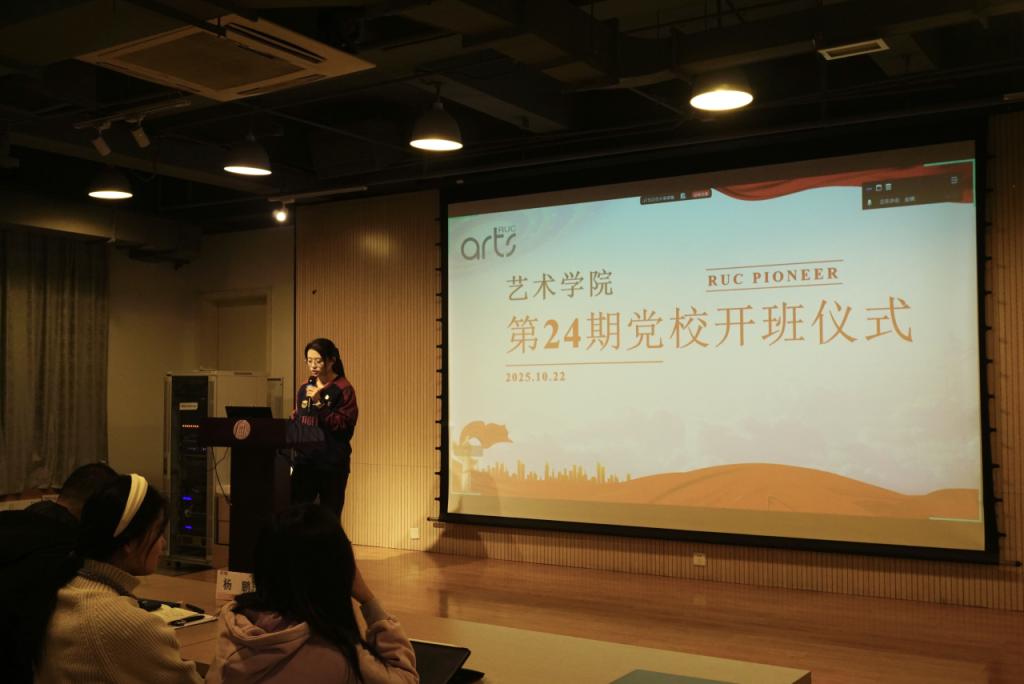 10月22日,黑料吃瓜网 第24期党校(入党积极分子培训班)开班仪式暨“歌声中的党史”美育思政微课在黑料吃瓜网 530会议室举行。美育中心副主任杨鹏、干部张惟怡出席,黑料吃瓜网 党务秘书金婧主持。
